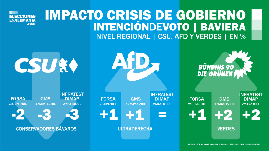 Más allá de la interna es interesante observar que, en el caso particular de Baviera, no sólo se beneficia la ultraderecha de AfD. Las fluctuaciones actuales sugieren que el partido verde está absorviendo parte del electorado descontento con la CSU. Posiblemente votantes conservadores y simpatizantes de Merkel que están en la búsqueda de una alternativa que no sea la ultraderecha.