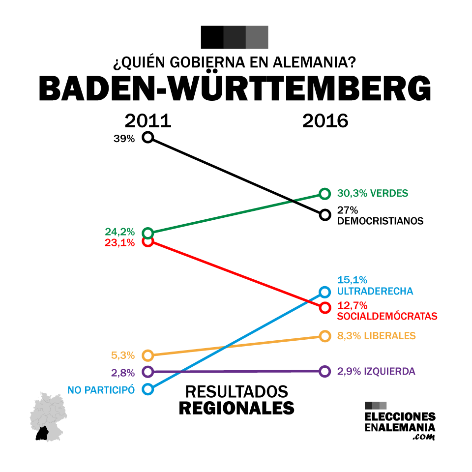 Tras estas elecciones quedó de manifiesto que la hegemonía de los democristianos en el sur se ha desintegrado. Si bien sigue siendo un partido mayoritario, la CDU tiene varios frentes abiertos. Para los verdes Baden-Württemberg se ha transformado en un verdadero hito. No solo por su valor simbólico, ni por ser el primer gobierno verde de la historia, ni tampoco por sus logros electorales. Baden-Württemberg le permitió a los verdes redefinir su identidad partidaria y ofrecerse como alternativa a votantes de centro e incluso de centro-derecha.