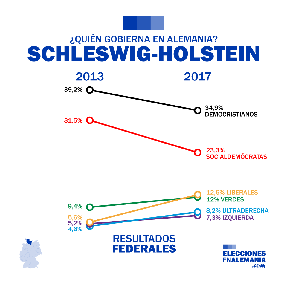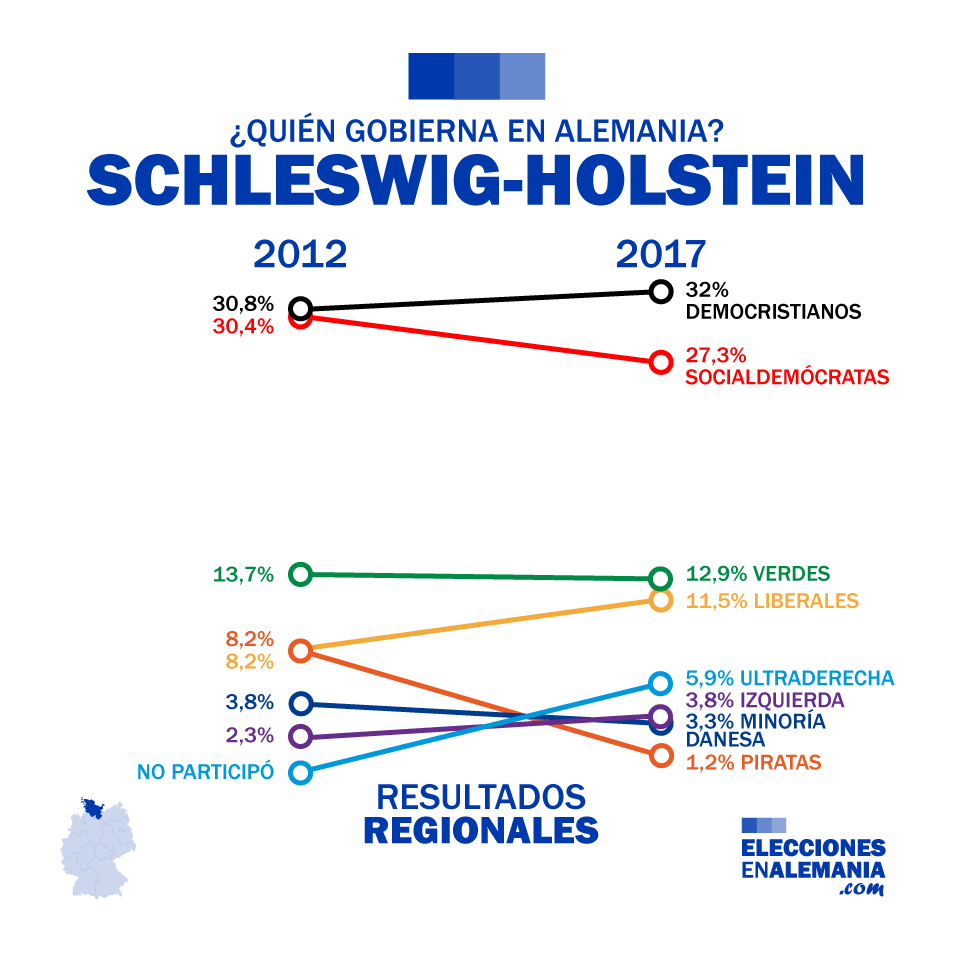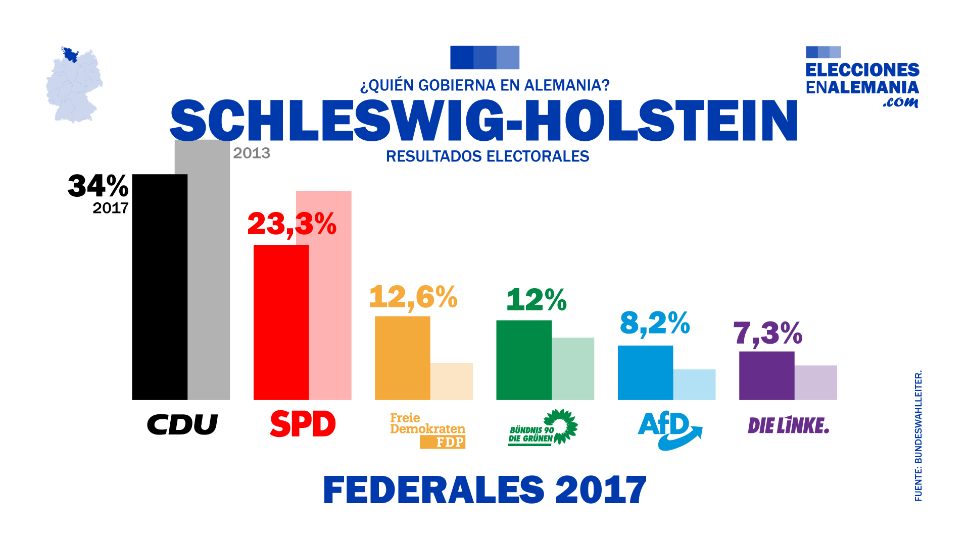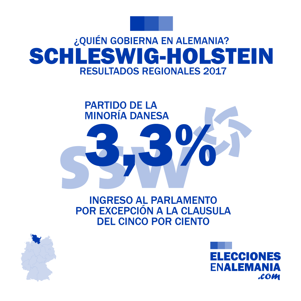 En dicha elección sufrieron varios partidos. El SPD, que además de perder votos también perdió el gobierno, los piratas, que como en el resto de los parlamentos se hundieron en el olvido, y el partido de la minoría danesa (SSW), que perdió la posibilidad de seguir formando parte del gobierno de la región. Cabe destacar que el SSW es un partido para el que no rige la barrera del 5% para ingresar al parlamento. Esto es así porque se trata de una fuerza que representa a una minoría nacional. Existen otras minorías a las que les corresponde esta excepción: el partido de los sorbios en Brandenburg y Sachsen y el partido de los frisios en Niedersachsen.