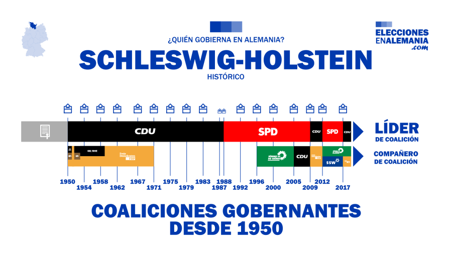 Hasta fines de los ´80 fue una región dominada por los democristianos (CDU) con eventuales coaliciones con el partido liberal (FDP). Sin embargo, el escándalo político generado por un reportaje del semanario Der Spiegel sobre la campaña sucia de 1987 contra el candidato del partido socialdemócrata (SPD) torció la historia y se rompió la hegemonía.
