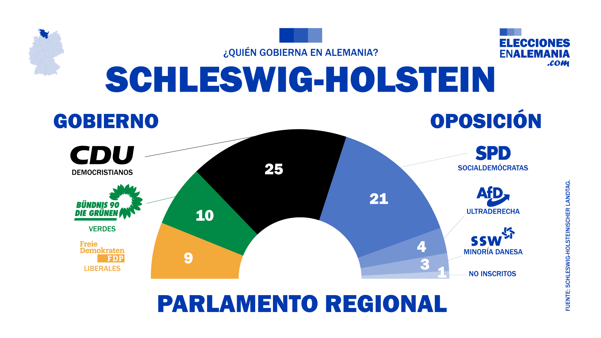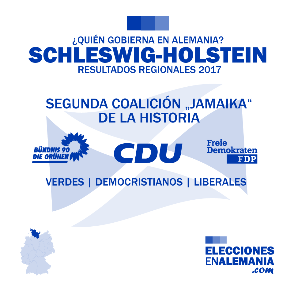 Schleswig-Holstein es la segunda región de Alemania que ha logrado formar un gobierno mediante la alianza entre democristianos, liberales y verdes. La denomiada Koalition Jamaika.