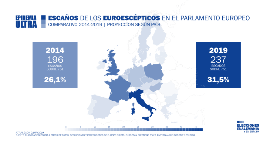 La crisis de los partidos mayoritarios que sufre gran parte de los países europeos se ha convertido en una oportunidad para que euroescépticos y ultraderechistas aumenten su influencia en el Parlamento Europeo. A días de las elecciones, fuerzas como el Brexit Party de Nigel Farage en el Reino Unido o La Lega de Matteo Salvini en Italia dominan las encuestas en sus respectivos países y se convertirán en los rostros de la oposición al proyecto europeo. El golpe simbólico que esto significa para la Unión Europea obliga a los distintos gobiernos y elites políticas y económicas a replantear su estrategia. Caso contrario, los ultraderechistas no sólo ganarán escaños sino que aumentarán su capacidad para dictar los temas de la agenda pública.