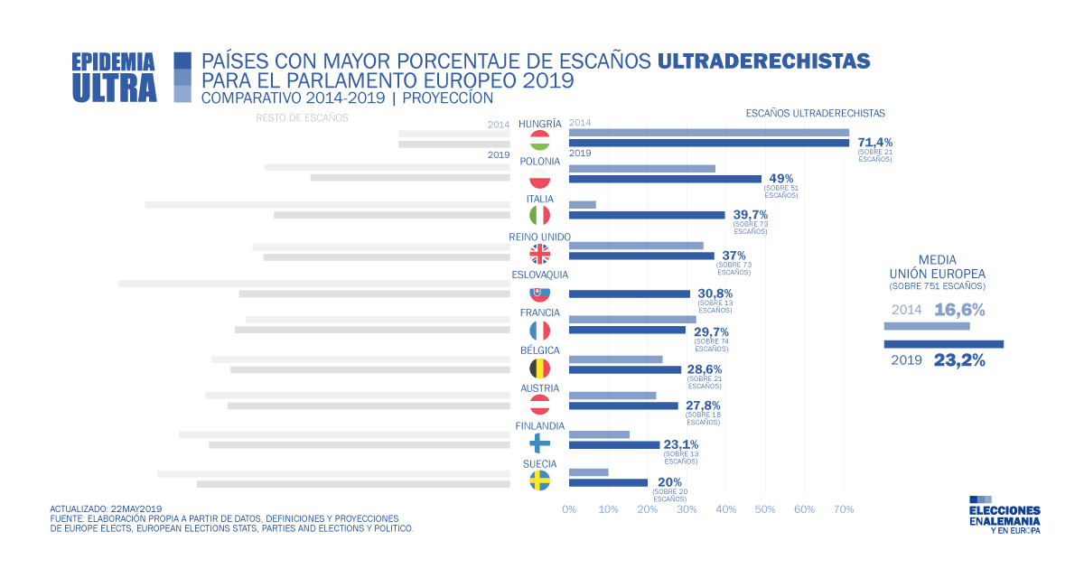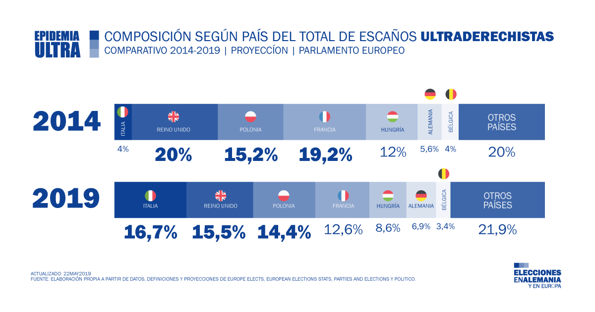 La sangría de los conservadores se debe mayormente al crecimiento de los partidos ultraderechistas, cuyo apoyo a aumentado exponencialmente en diferentes países. En el libro Epidemia Ultra. La ola reaccionaria que contagia a Europa (2019, Independiente) se evidencia una consolidación de diferentes fuerzas políticas que, apoyadas en un discurso antiinmigración, antiislam y antipolítica, reunen fuertes apoyos de distintos sectores. En países como Polonia, Italia o Hungría, ya lideran el gobierno o forman parte de él. En el resto lideran la oposición o forman parte del parlamento nacional. Con pocas excepciones como Portugal, Irlanda o Malta, la ultraderecha ha logrado penetrar en el sistema político de todo Europa.