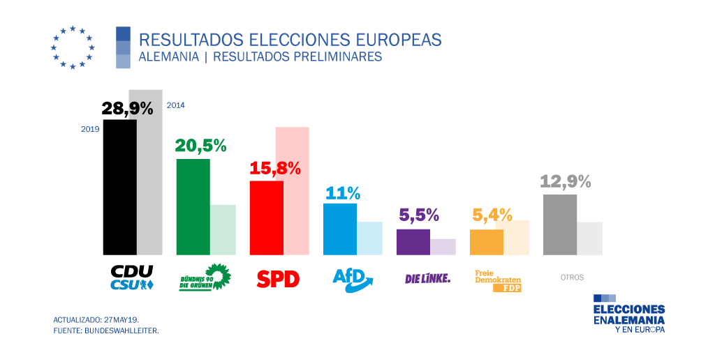 La gran pregunta que queda en el aire en Alemania es el impacto que tendrá este resultado en la gran coalición. Una alianza que ha sido puesta en cuestión en más de una oportunidad pese a que todavía no llega ni a los tres años de mandato. ¿Será el inicio del fin para el gobierno germano? Posiblemente estas europeas sean sólo una antesala. En septiembre y octubre tendrán lugar tres elecciones regionales en el Este del país y tanto el SPD como la CDU sufrirán una nueva caída. Aquí no solo los verdes los que se aprovecharán de su crisis sino la ultraderecha de AfD. Con una intención de voto superior al 20% los radicales tienen la chance de incluso arrebatarle el liderazgo a alguno de ellos. El golpe simbólico sería de gran magnitud y, muy posiblemente, la canciller Merkel deberá evaluar si es el momento de poner un punto final a su largo mandato.
