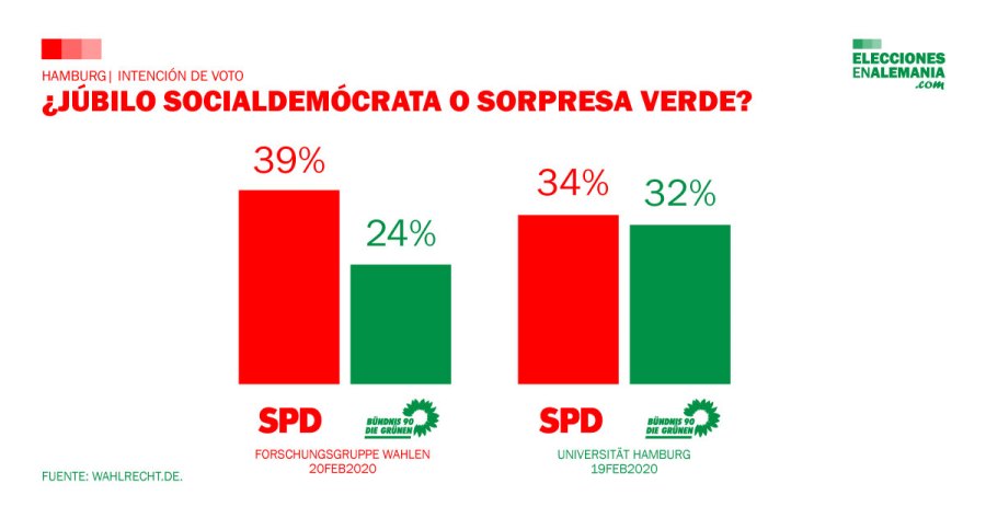 Otras instituciones, como la Universität Hamburg, indican un resultado mucho más parejo con un partido verde (Bündnis90/die Grünen) por encima de los 30 puntos, casi triplicando lo logrado hace cinco años.